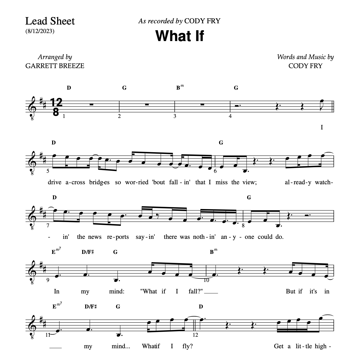 A piano/vocal score and leadsheet perfect for a solo performance of “What If." Download includes two separate PDFs:
